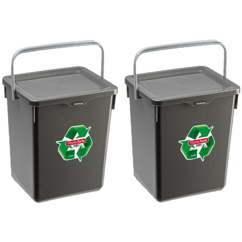 2x stuks opslagboxen/emmers kunststof met deksel antraciet 5 liter. Handige opslagbox te gebruiken voor het bewaren van wasmiddel, honden/kattenvoer of voor bijvoorbeeld het scheiden van afval. Afmeting: ca. 20 x 17 x 23 cm.